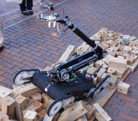 都不是,这是日本横的警视厅研发可承受110公斤以上伤员履带式机器人。它的“遥控臂”可以将被困人员安全运出危险地带。它还内置有传感器,可以在运输途中探测被困人员是否受伤。唯一的不足是它只安装了标准红外摄像机,因此它的搜寻功能有限。