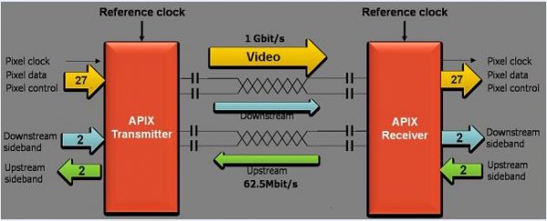 该接口主干不使用19线HDMI电缆,而只需要一条4线电缆,通过两个线对提供差分信号,采用“星绞型四心”结构,具有100Ω标称阻抗。2007年推出的1Gbps APIX链路(如图1所示)被证明高效而且可靠。